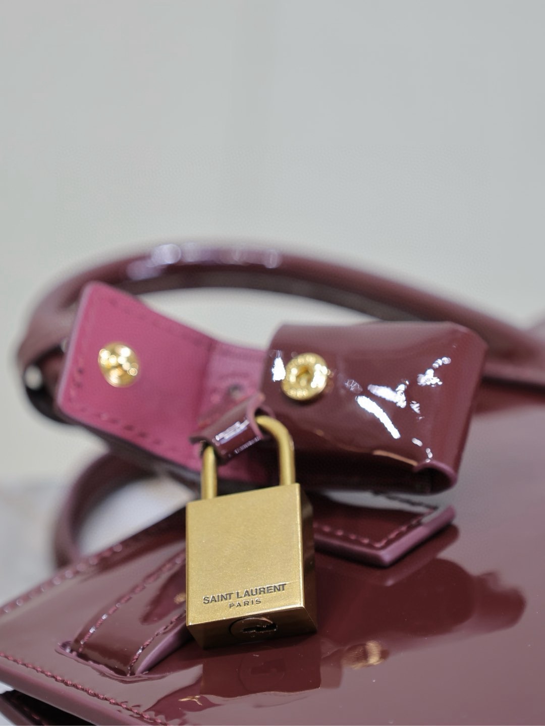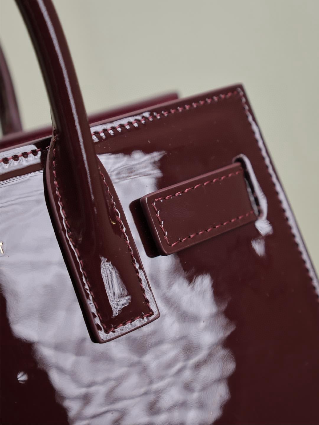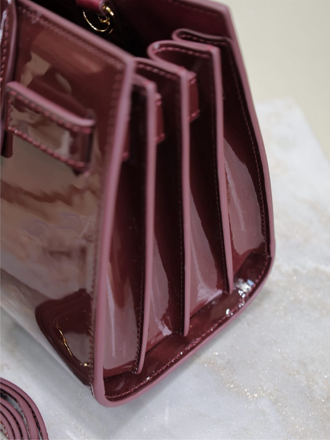 Saint Laurent Sac De Jour Nano Bag in Bordeaux Patent Calfskin