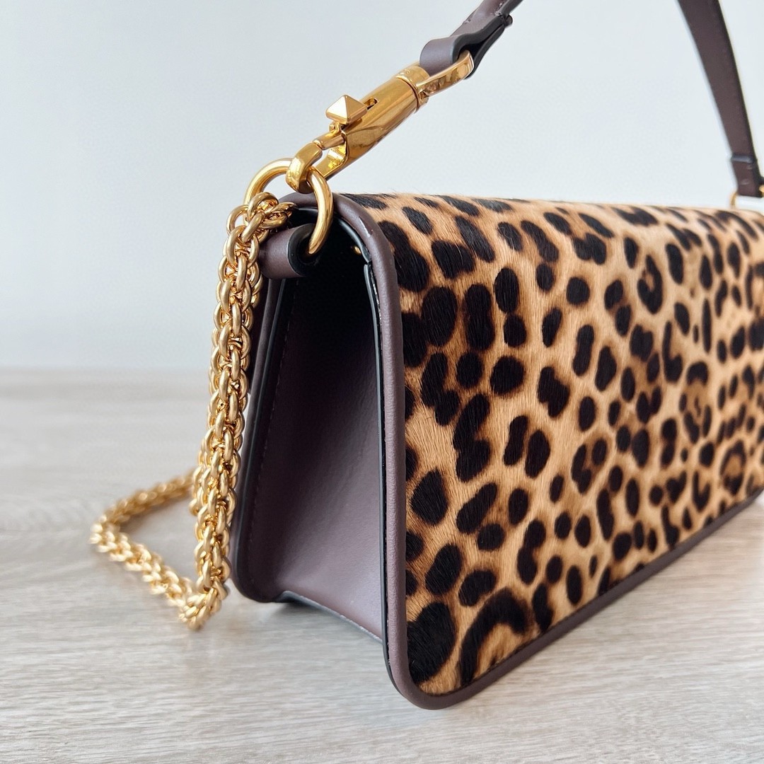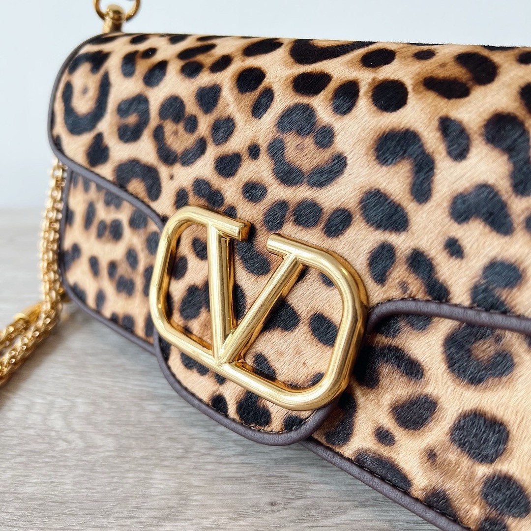 - Pony-effect calfskin leather with Animalier print and VLogo Signature metallic detail.