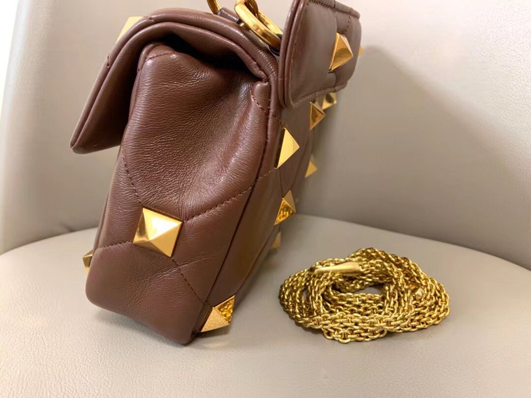 Valentino Medium Roman Stud Chain Bag In Teak Brown Nappa