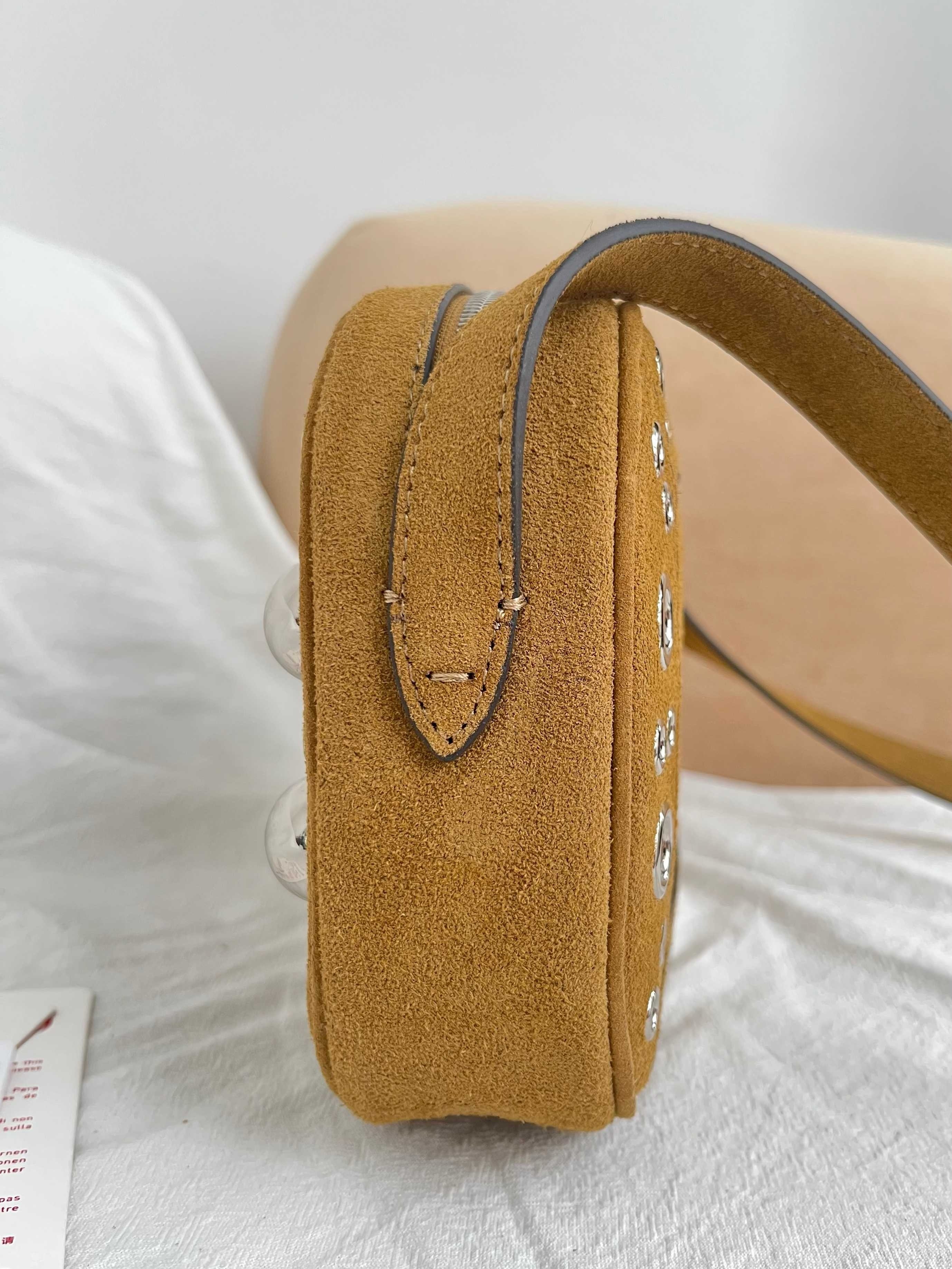 Drawing inspiration from the spirit of late 1960s folk and psychedelic rock, this version of Valentino Garavani Nellcôte bag is designed with compact proportions and an adjustable cross-body strap. It's made from suede calfskin and has silver-tone eyelets and studs tracing the edges. Stow your phone, sunglasses, keys and cardholder inside.