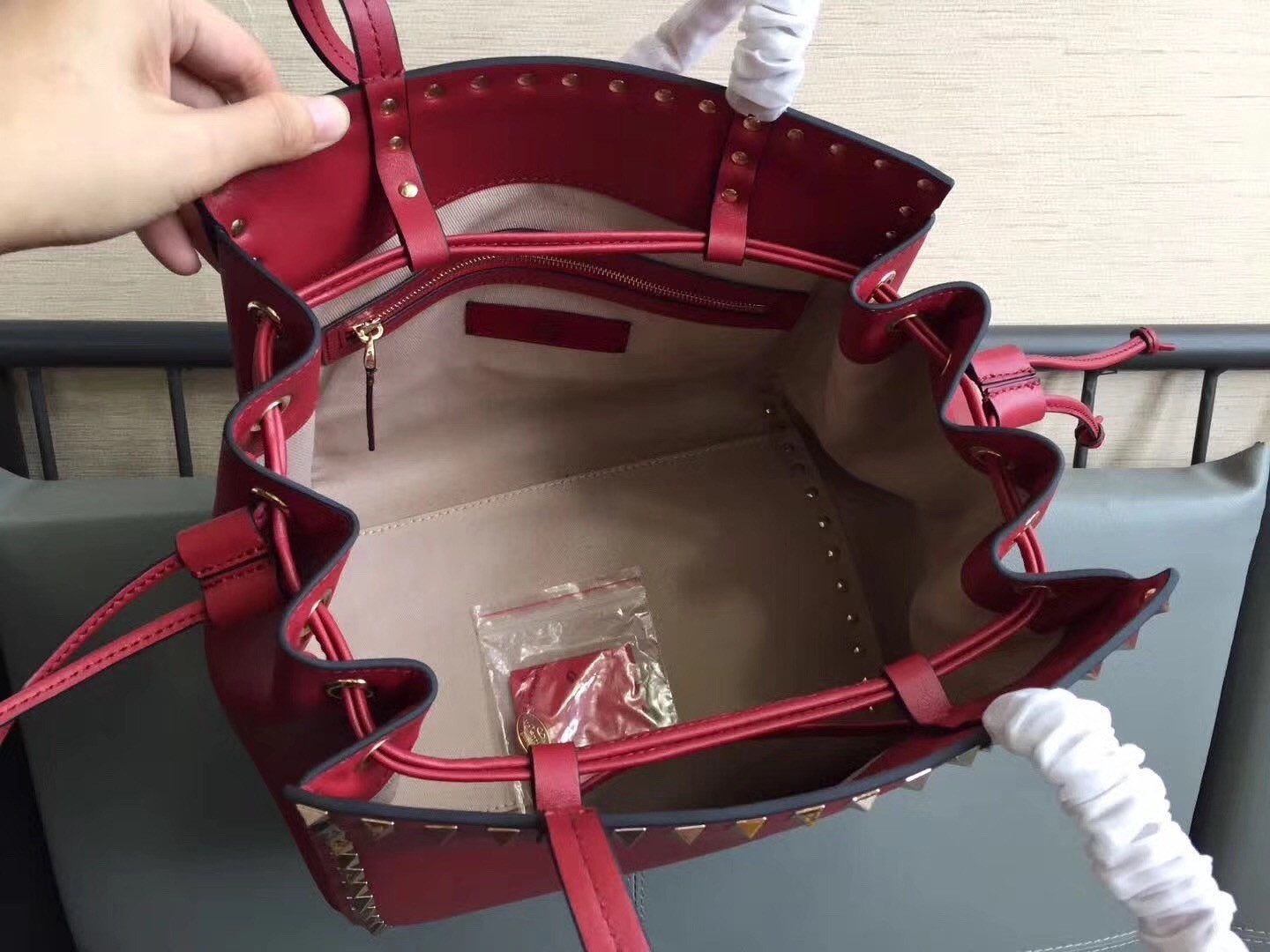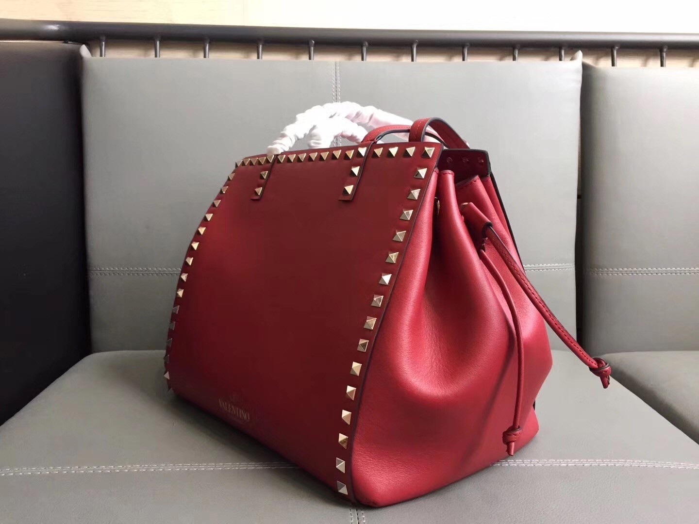 Valentino Red Rockstud Double Handle Drawstring Bag