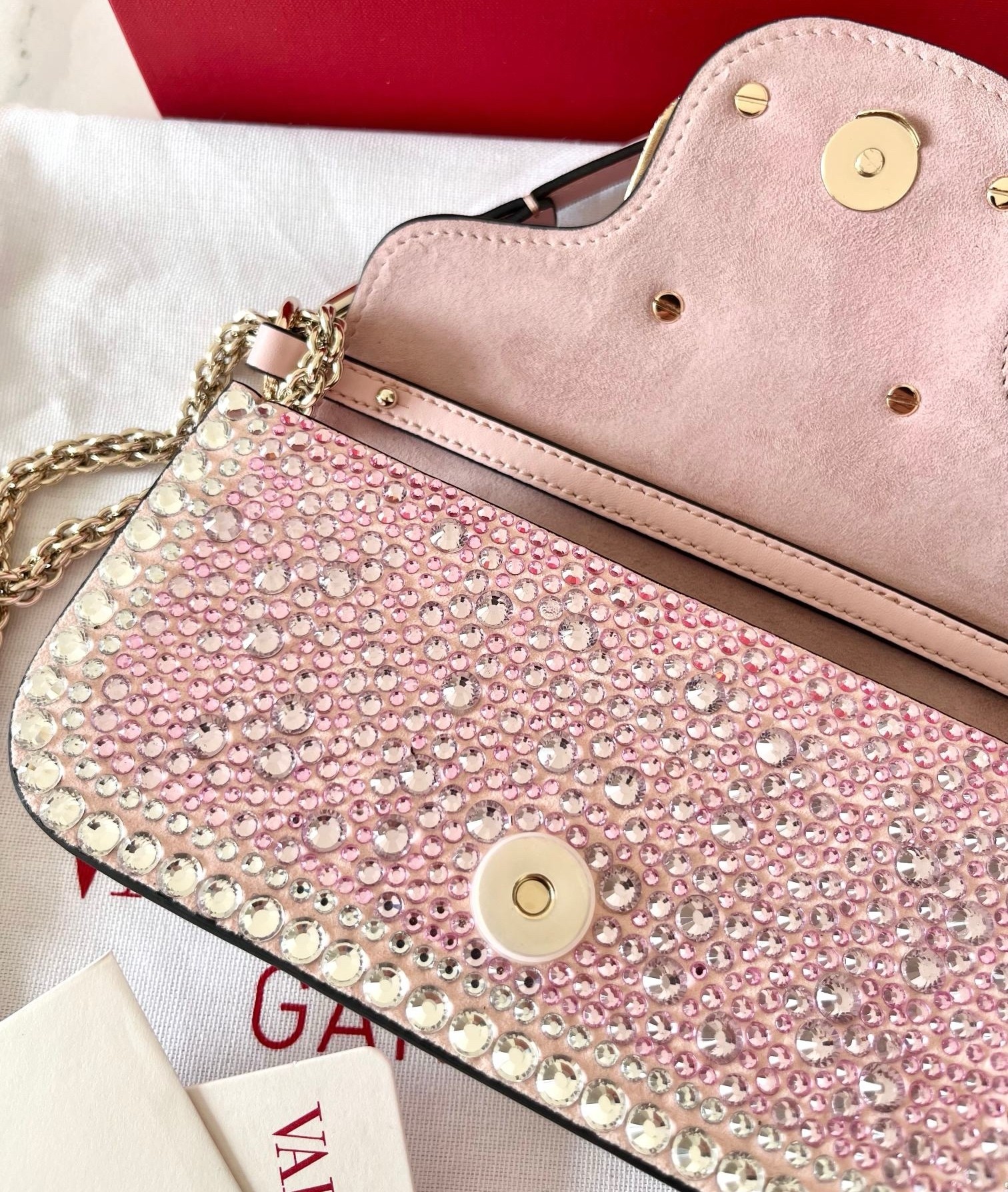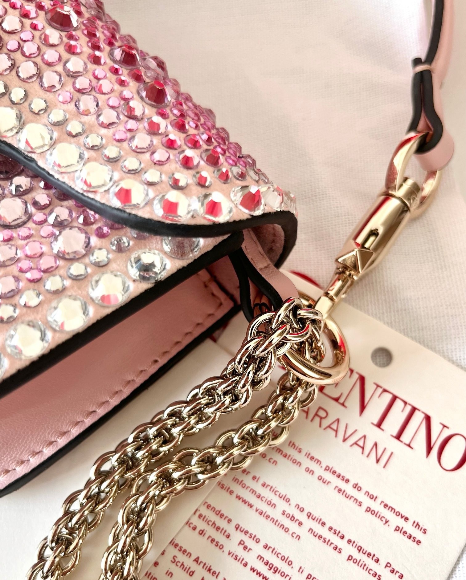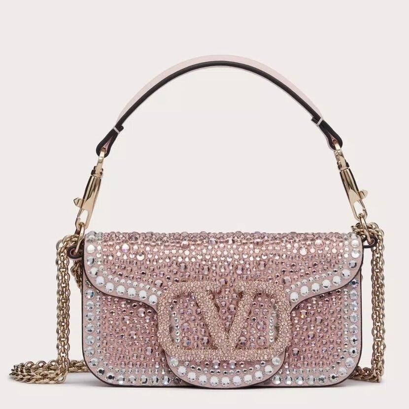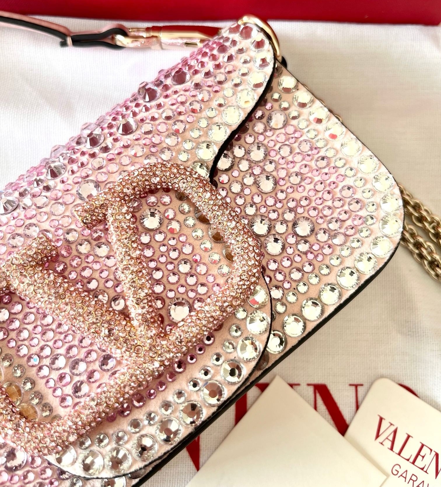 Valentino Small Loco Shoulder Pink Bag with Rhinestone Applique