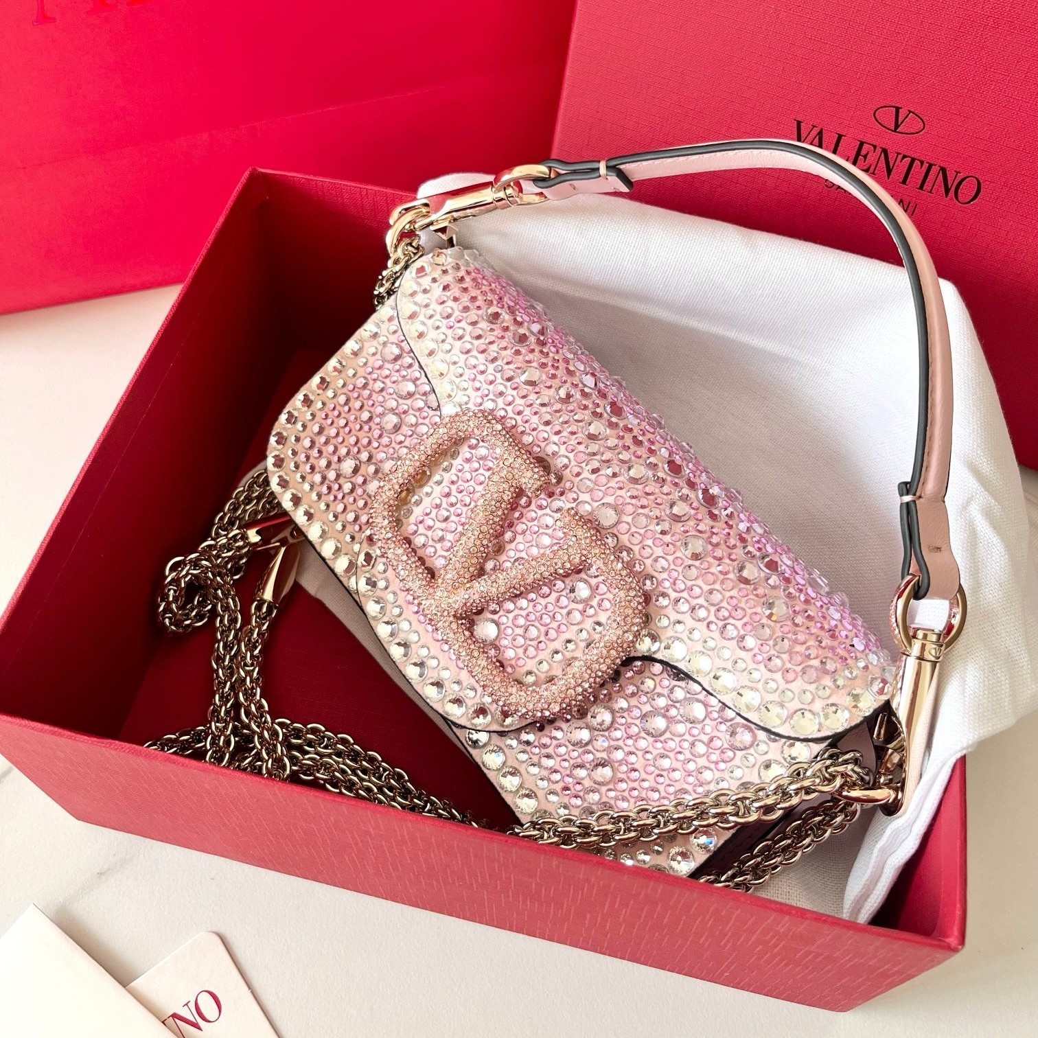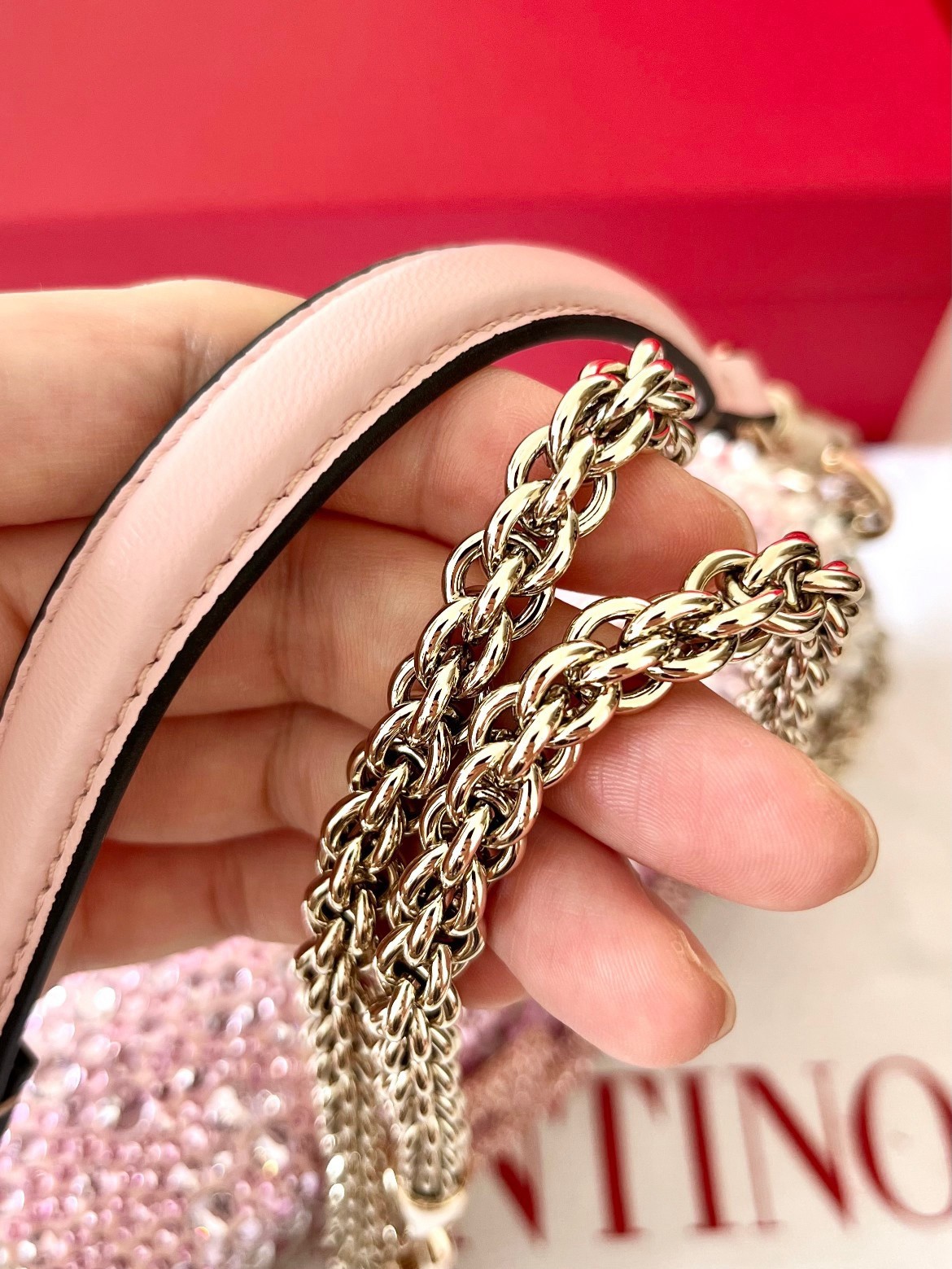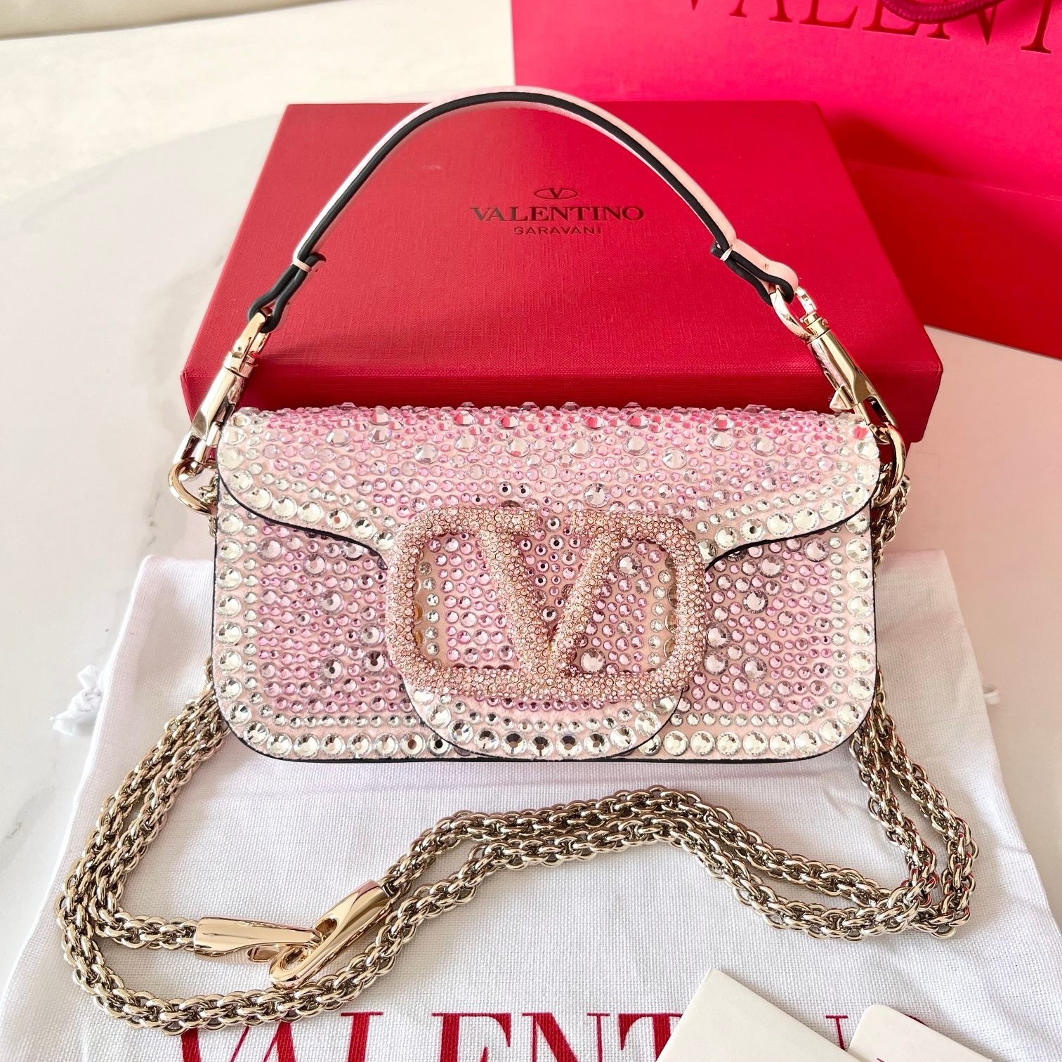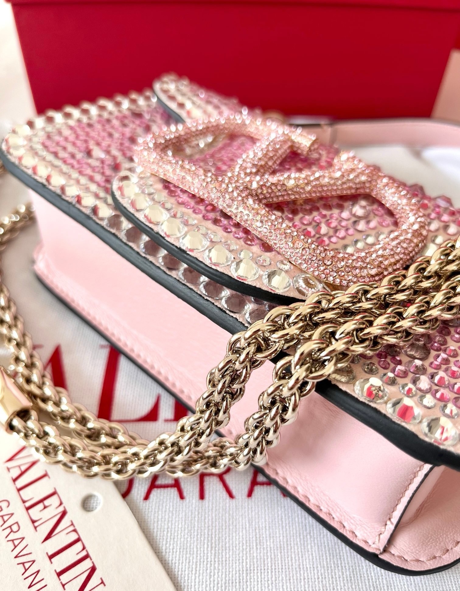 Valentino Small Loco Shoulder Pink Bag with Rhinestone Applique